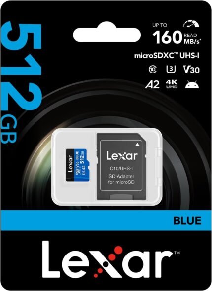 Lexar(v300)BluemicroSDXC UHS-I Card 512GB, Up to 160MB/s Read,Class 10, U3, V30, A2, Full HD & for Smartphones/Tablets/Action Cameras