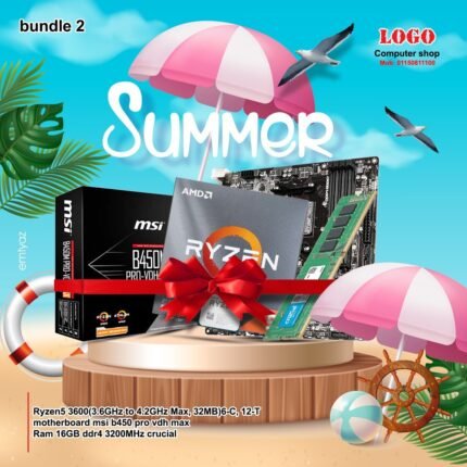 Gaming Bundle 1\Ryzen 5-5500(3.6GHZ- 4.2GHZ)6C/12T tray+fan\motherboard msi b450 pro vdh max\Ram 16GB ddr4 3200MHz crucial