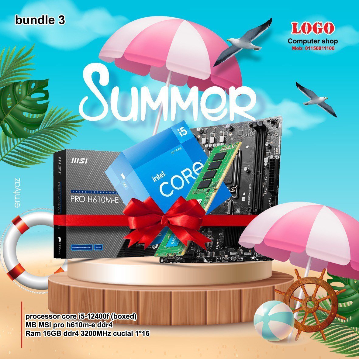 Gaming Bundle 3\Intel Core i5-12400F(2.50GHZ- 4.40GHZ)6C/12T BOXED\motherboard MSI PRO H610M-E DDR4\Ram 16GB ddr4 3200MHz crucial