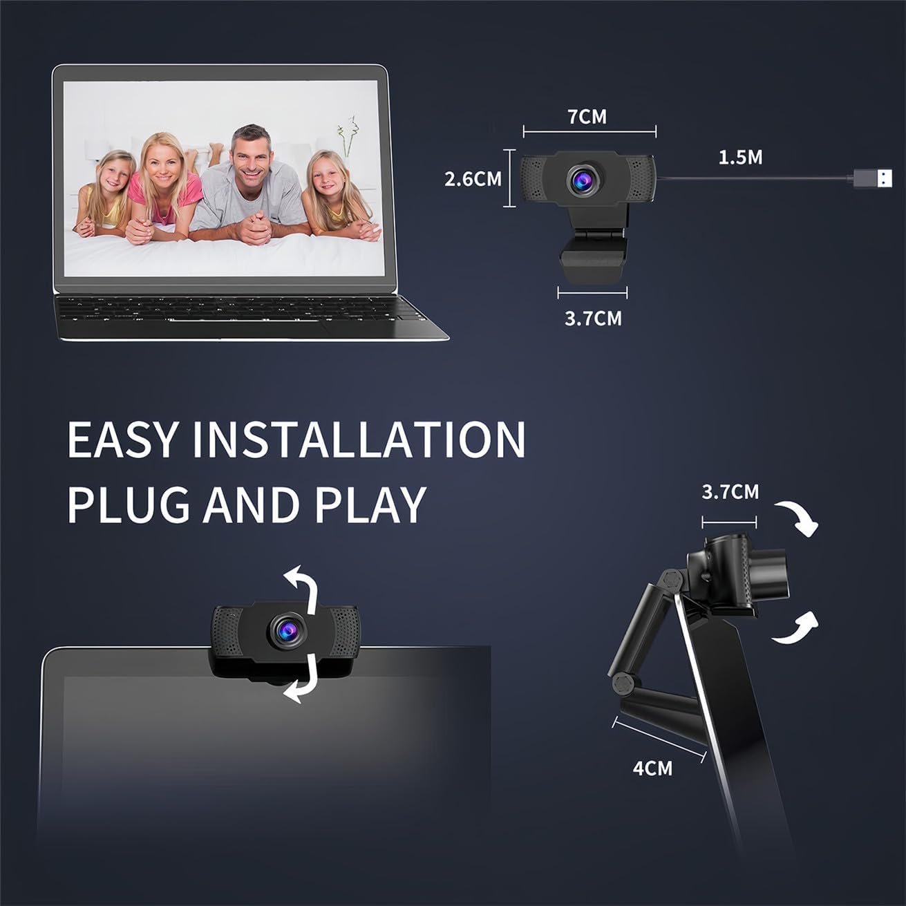 - Plug and Play: The Full HD web cam is plug and play, just plug the USB cable into your computer’s USB port to start using it, no need to download any programs. The base is 90° adjustable and can be easily placed on a computer monitor without any skills.